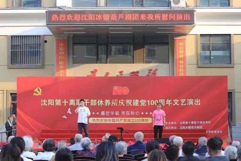 当日下午,现代音乐学院党总支第一党支部的部分党员、积极分子参演了辽宁省军区沈阳第十干休所举办的“建党百年文艺演出”,为观看本场演出老红军、老干部以及其家属共百余人演出了对唱《映山红》、《红旗飘飘》,萨克斯独奏《我爱你中国》等节目,获得阵阵掌声和好评。