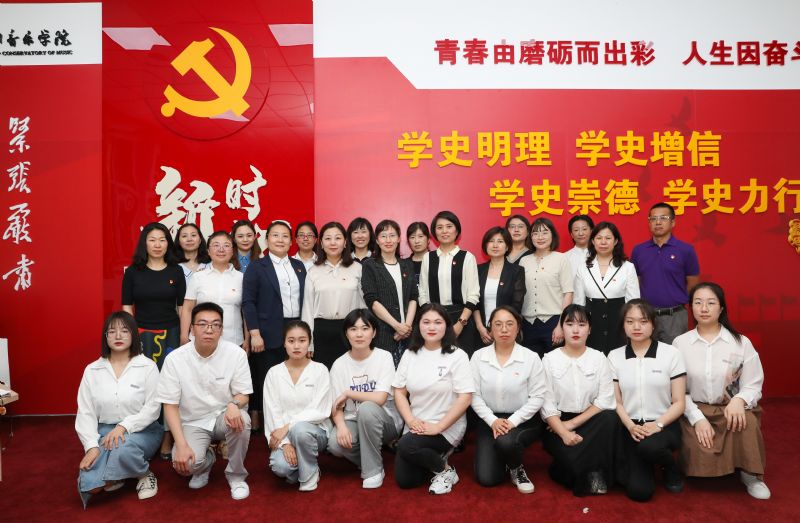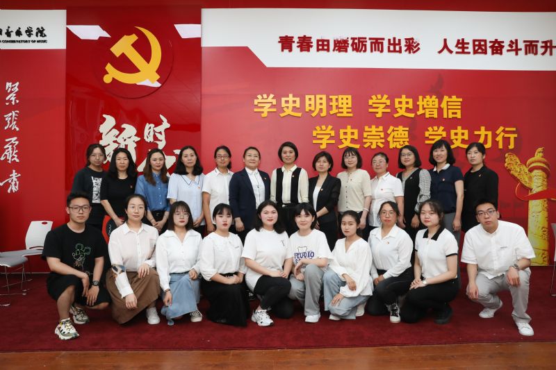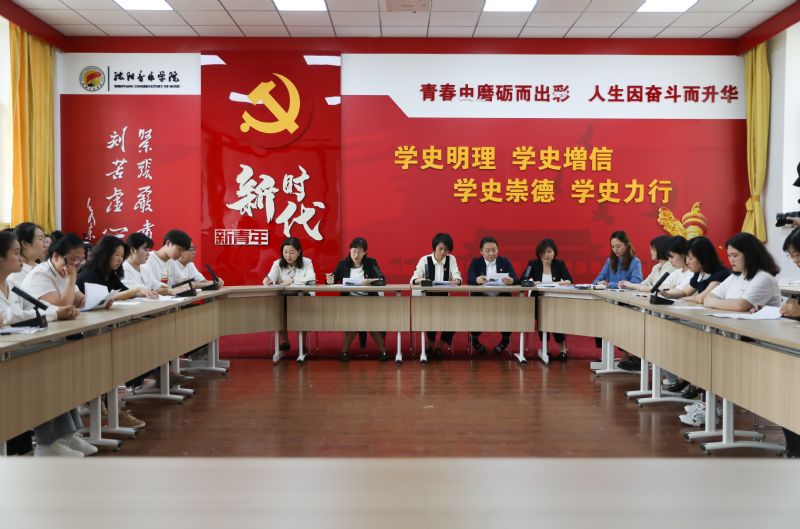 为切实推进党史学习教育走深走实走心,充分展示《百年卓越》系列活动阶段性成果,思政教研部“党史学习教育”暨《百年卓越》系列活动推进会,于6月9日在沈阳音乐学院大学生活动中心举行,音乐学系主任董蓉教授,音乐学系党总支副书记张威,参加经典寻访学生代表、参加思想政治理论课实践教学学生代表、参加《百首歌曲中的百年党史》现场指导的音乐学系学生代表及思政教研部全体教师出席会议。