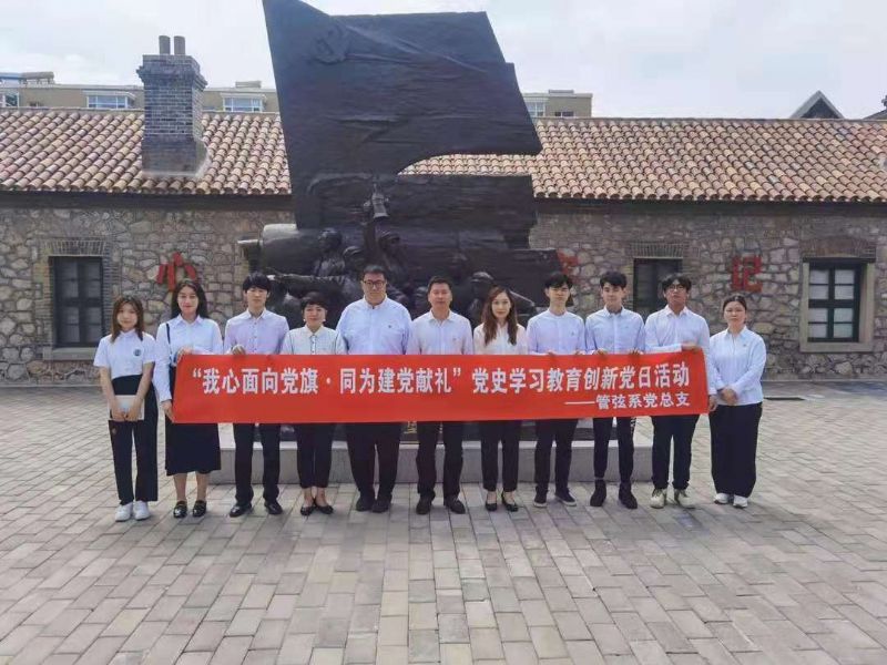 为庆祝中国共产党成立100周年,深入贯彻党的十九大和十九届二中、三中、四中、五中全会精神,进一步落实习近平总书记关于党史学习教育重要论述和学院2021年“创新党日”工作的部署要求,引导广大党员传承红色基因,发扬革命传统,6月16日,管弦系党总支组织党员、入党积极分子、优秀团员赴中共沟帮子铁路党支部开展“我心面向党旗·同为建党献礼”党史学习教育创新党日活动。
