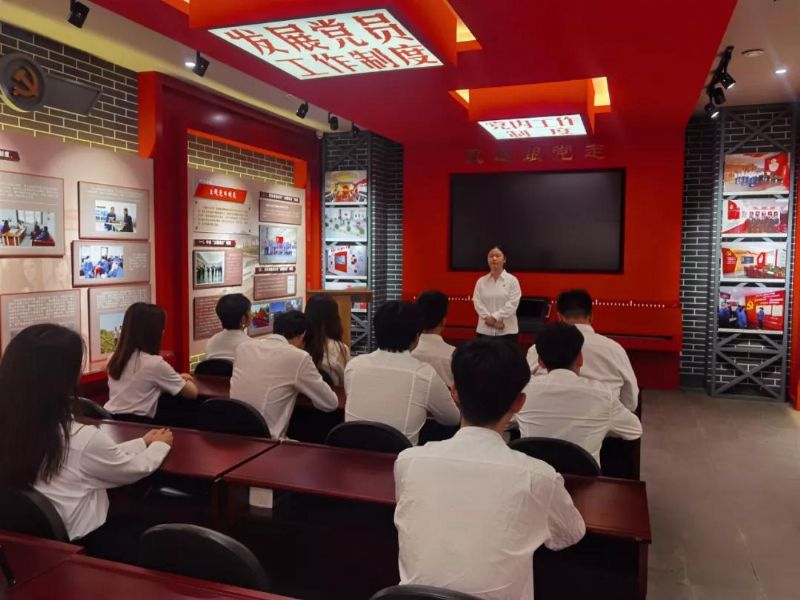 党支部制度建设展厅,系统展示和解读了中共党的支部建设基本制度的实践探索。师生在党总支副书记和组织员的带领下,结合图文学习了党支部基本组织生活制度、党支部换届选举制度、党员教育制度、发展党员工作制度、群众工作制度。