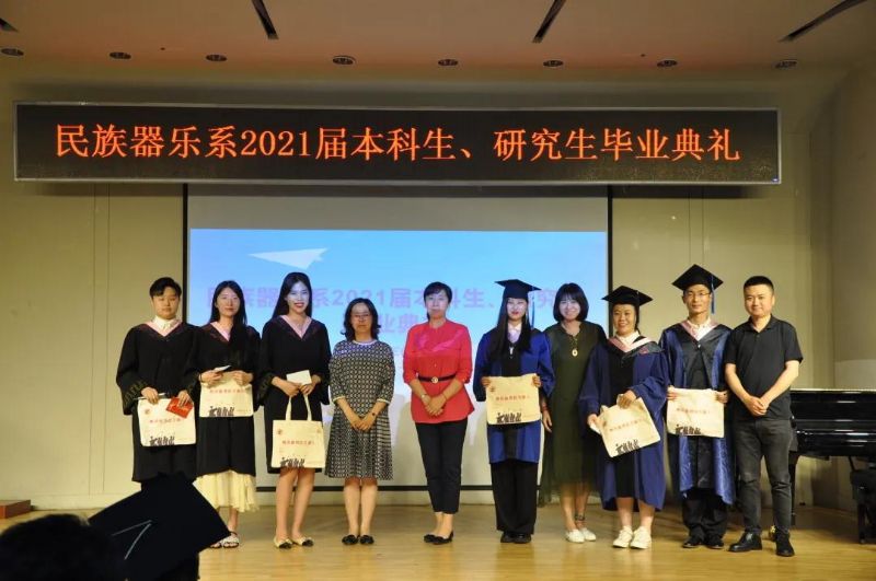 毕业典礼现场,各教研室主任还为毕业生送出系里准备的小礼物——具有民乐特色的帆布包。礼物虽小,却寄托着民族器乐系对毕业生沉甸甸的期望,希望毕业生背上这个行囊,无论今后身处何方,都能想起民族器乐系。