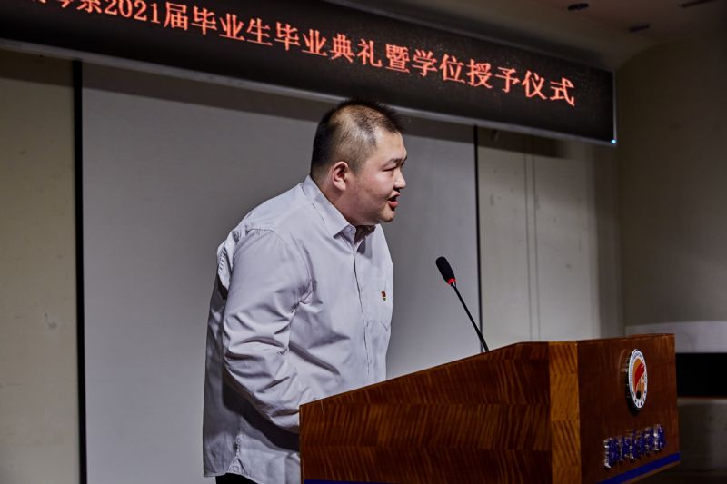 系主任李哲、党总支书记程宪伟代表系领导班子、全体师生向顺利毕业和获得学位的全体毕业生们表示热烈的祝贺,向优秀毕业生获得者表示深深的敬意,向在毕业生们的成长道路上辛勤指导和默默付出的老师们、家长们表示诚挚的谢意!同时,也向全体毕业生提出了殷切的期望。一是勿忘初心,坚守梦想,守住音乐理想,一步一个脚印,走向属于自己的人生巅峰。二是面对社会要多几分责任,希望大家作为一名有良知、高素质的青年,要勇于担当责任,矢志惠济天下。三是希望大家做一个有格局的人,要有一份颠簸不破的自我坚守与信仰皈依,要有一种“乐以天下,忧以天下”的使命和责任,要努力成为社会栋梁和业界精英,创造出无愧于国家、无愧于时代、无愧于家庭、无愧于自己的骄人业绩。