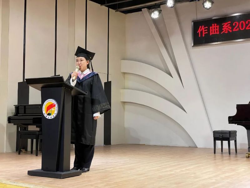 6月23日下午,作曲系2021届毕业生毕业典礼暨学位授予仪式在第五教学楼演艺厅隆重举行。原学院副院长范哲明教授、作曲系班子成员、毕业生导师、教研室主任、专业教师代表以及2021届全体毕业生出席典礼。毕业典礼由辅导员齐悦主持。