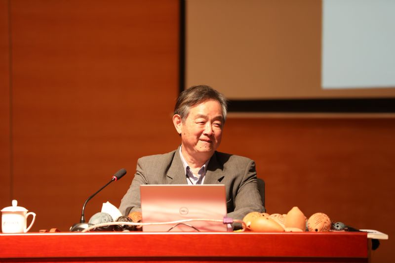 讲座中,陈教授向在场听众分享了他与古埙的深厚渊源并分享了其著作《中国古埙八千年历史钩沉》的创作经历。继而从中国史前埙的起源开始,从原始社会的兴隆洼文化到河姆渡文化、红山文化、龙山文化,他结合出土实物图片讲解了古埙的发展及特点,并提出了自己独到的学术见解。