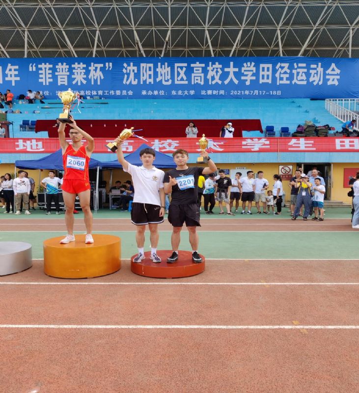 2021年7月17日,“菲普莱杯”沈阳地区高校大学生田径运动会在东北大学召开,我院经过前期选拔和积极备战,派队参加此次比赛,由公共基础部体育教研室主任赵莹带队,王琦、柳誉青、李迪、宋冬寒四位教师担任教练,经过两天的角逐,学生们顶着烈日,在赛场上奋力拼搏,展现了我院学生的风采,最终取得了乙组团体总分第三名的优异成绩,并获得体育道德风尚奖。