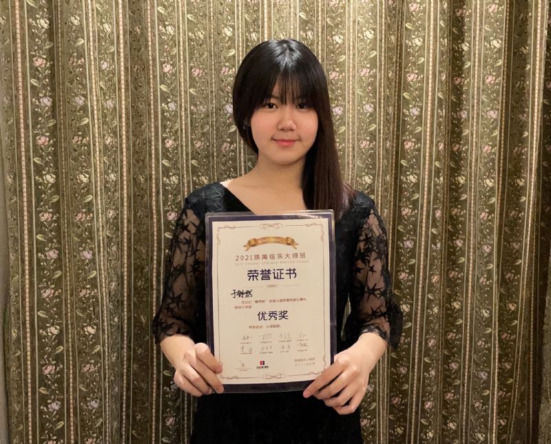 2021年7月,在珠海“横琴杯”全国小提琴奏鸣曲比赛中(线下),我校管弦学科学生于舒然荣获少年组优秀奖,主教教师于泳。