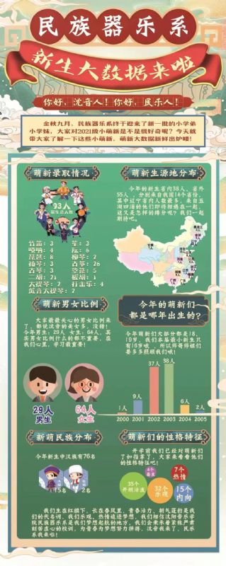 为让大家更加了解彼此,我系重磅推出专属民族器乐系的“新生大数据”。“你是什么专业的”“你老家是哪里的”“你的生日是哪一年”……为大家收集来自五湖四海的萌新数据,快来寻找与你有缘的小伙伴吧!