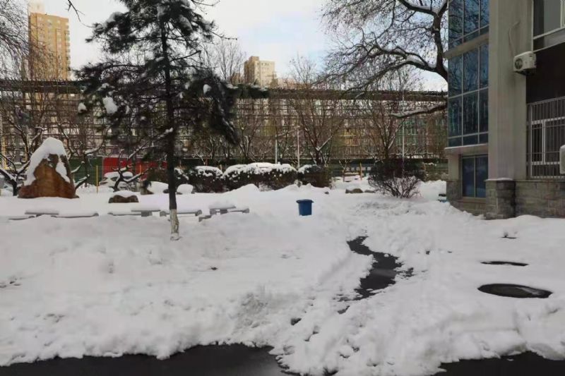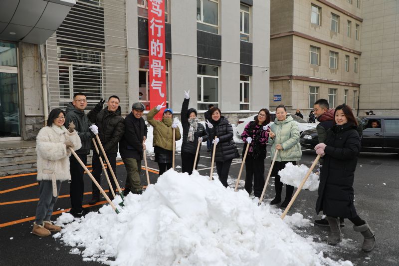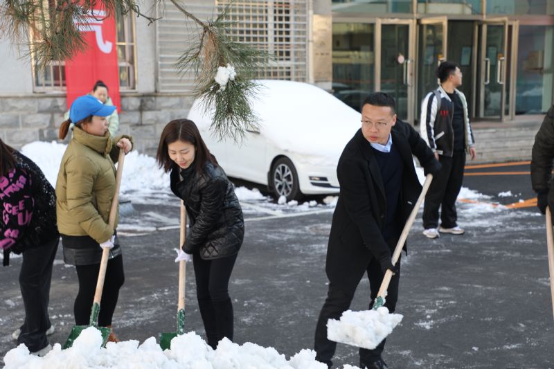 面对厚厚的积雪,同志们挥舞雪铲,铁锹、冰铲的摩擦声铿然有力,劳动场面热火朝天,大家在欢声笑语中将音乐剧场周边及通往办公楼的必经之路上的积雪基本清理干净,为师生创设了出行方便、安全通畅的道路,以实际行动践行初心,为民解忧担当使命。