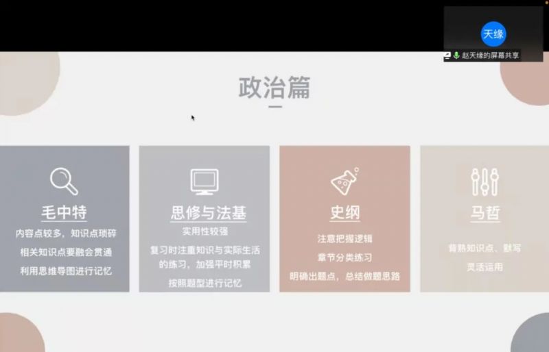 王成成针对考研政治所涉的相关题型备考、热点问题等方面依次进行解读。各位分享人从备考时间安排、备考心态调整、复习计划制定、身心健康等方面入手,结合自身经历,与大家分享了宝贵的考研经验和方法,解答了考研中的常见困惑,为考研路上的同学们在备考方面进行全方位的分析和解读。