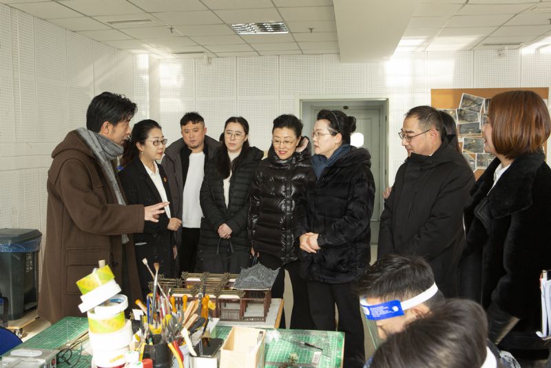 调研开始前,冯志莲考察了戏剧影视美术设计系实训教室,观看了“百年卓越”沉浸式教学成果——东北老工业基地模型展示。