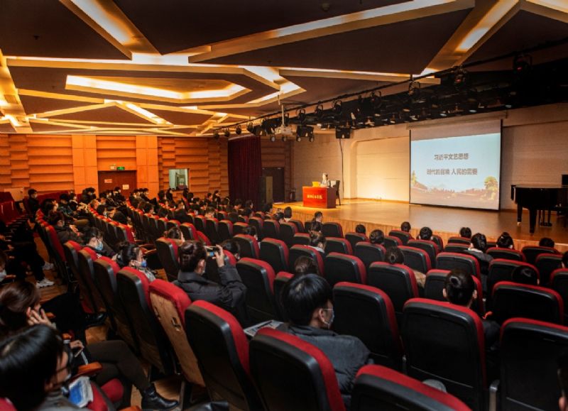 调研结束后,冯志莲以《习近平文艺思想:时代的召唤 人民的需要》为题,为师生讲授了一堂生动的形势与政策课。冯院长结合自身的学习体会,从社会文艺创作环境和学校实际出发,对习近平文艺思想进行了深入的阐释。她从毛泽东1942年《在延安文艺座谈会上的讲话》谈起,那一次座谈会开启了社会主义文艺发展的新纪元,直接奠定了几十年文艺工作的总基调。习近平总书记2014年《在文艺工作座谈会上的讲话》是立足于当前我国文艺领域所面临的新形势、新情况、新问题,创造性地回答了事关文艺发展的根本性、方向性的重大问题。深刻阐述了文艺和文艺工作的地位、作用和重大使命。对在新的历史条件下,开创文艺工作新局面作出了全面部署,提出了明确要求。作为社会主义中国的文艺工作者,必须有“铁肩担道义”的社会责任感,努力创作无愧于时代,无愧于人民的优秀作品,用明德引领风尚,把个人的艺术追求、学术理想同国家前途、民族命运紧紧结合在一起。