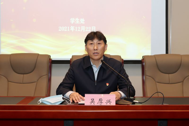 吴厚兴讲话。他系统、全面总结了学院学生工作队伍在疫情防控工作中取得的成绩,肯定了互查互促交流会的特色、亮点和成效,并就进一步加强学生疫情防控工作提出三点要求。一是提高政治站位。充分认识在疫情防控常态化形势下做好各项工作的特殊性和重要性,严抓防控任务不松懈,切实保障广大师生的生命健康安全。二是加强日常管理。时刻紧绷安全稳定和疫情防控两根弦,坚持底线思维,坚决克服麻痹思想、侥幸心理和松劲心态,从严从紧从细抓好疫情防控和校园安全工作,严防疫情输入校园。三是严格落实责任。各二级院(系)要认真梳理总结交流会中的好经验、好做法,结合本单位工作实际,针对防控薄弱环节,坚持问题导向,加强自查整改,切实防范化解风险隐患。吴厚兴强调,学院学工队伍要以本次会议为新起点,认真谋划好2022年各项工作,以更加饱满的热情、更加昂扬的斗志、更加务实的作风,努力开创学生工作新局面,为学院发展建设作出新的更大贡献,以优异成绩迎接党的二十大胜利召开。