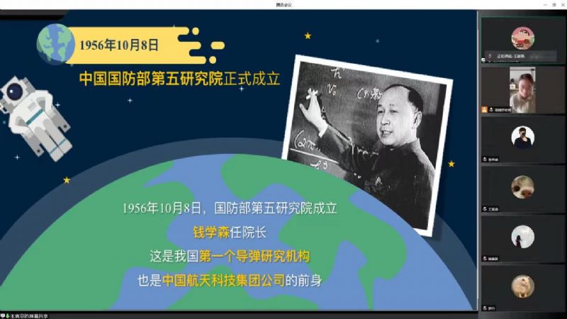 通过观看视频、图片展示等方式,向学生们介绍中国航天事业的发展历程,用详实案例讲述航天英雄事迹。大家纷纷表示为祖国的伟大成就而自豪,为祖国有这么多伟大的英雄而感动,这些伟大的成就凝聚了几代航天人的艰辛和奉献,先辈为祖国的航天事业奉献了青春和年华,奉献了热血和智慧,甚至献出了宝贵的生命。他们的奉献凝结成了伟大的航天精神!我们要传承伟大航天精神,与时代同步,与祖国同行。