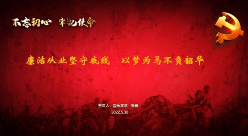 为深入贯彻落实《沈阳音乐学院毕业生廉洁从业主题教育方案》的精神和具体要求,进一步加强毕业生道德修养,5月30日音乐学系党总支副书记、纪检委员张威以“廉洁从业坚守底线 以梦为马不负韶华”为题给音乐学系2022届毕业生上了一堂廉洁从业教育专题党课。
