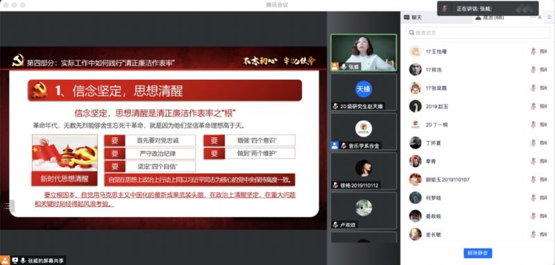 本次廉洁从业教育专题党课不仅增强了音乐学系2022届毕业生的清正廉洁意识,也增强了同学们的社会责任意识。同学们深受鼓舞、受益匪浅,纷纷表示将在人生之路上严于律己、以史为镜,脚踏实地做实事。