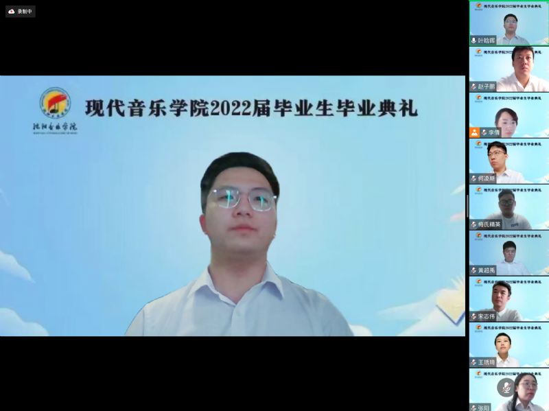 6月27日,沈阳音乐学院现代音乐学院2022届毕业生毕业典以腾讯会议室形式在线上隆重举行。现代音乐学院党总支书记火青、副书记王华、副院长白丽萍、庞亮以及各教学单位主任、副主任,各行政部门主任、副主任,研究生毕业生导师、本科生专业教师、毕业班全体辅导员、专职组织员、各教学单位秘书和全体2022届研究生、本科生参加了毕业典礼。典礼由王华主持。