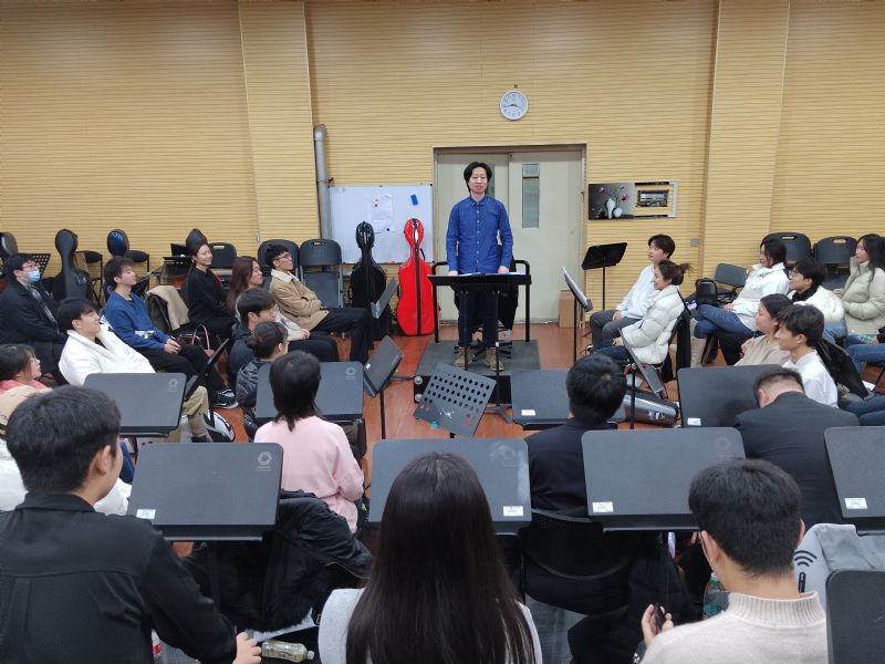 系副主任谢江(主持工作)以“音乐中的思政”为题为系内管弦乐团学生上思政课。他将专业课与思政课相融合,依托系内管弦乐团为平台,创新搭建“课程思政”新载体。他将音乐作品作为党史学习教育的生动教材,以音乐作品《黄河》等曲目为重点,从音乐与思政的关系、如何在表演中体现思政、中国音乐作品如何树立正确的音乐审美、弘扬正确的艺术价值三部分讲授音乐思政课。课上,他带领学生重温了大型交响乐曲《黄河》,深入浅出地向学生介绍了乐曲的创作背景,分析了时代特点,在“学、奏、思”的互动中使学生找到情感共鸣,激发学生的爱国情怀,以专业促党建,引导学生树立正确的世界观、人生观和价值观,激励学生用自己的“一技之长”谱写家国情怀、讴歌新时代。