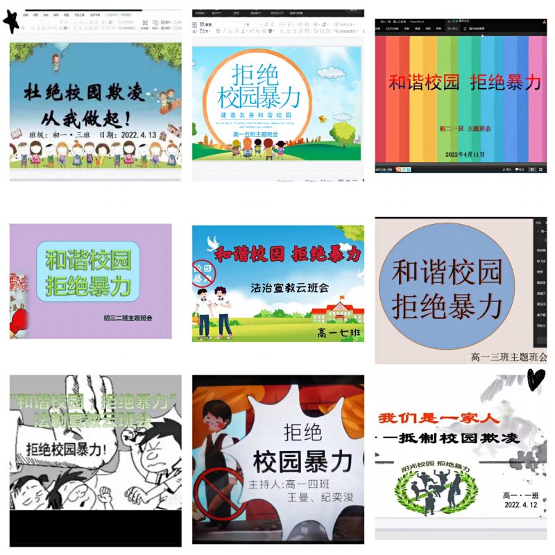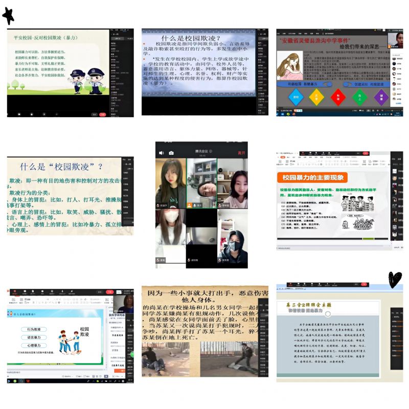 时值4月15日全民国家安全教育日到来之际,为提高学生法律意识,创建团结、友爱、和谐、向上、健康的校园风气,附中学生管理办公室以近期发生的安徽省宿州市灵璧县学生事件为例,于4月11日-4月14日在全校开展“和谐校园,拒绝暴力”法治宣教云班会。本次云班会采用腾讯会议、微信等网络平台开展,各班班主任精心准备班会内容,以翔实的案例和法律法规教育学生反对暴力文化入侵校园,了解校园暴力和校园欺凌的危害,倡导团结友爱、互帮互助的同学关系,学会正确处理同学之间的矛盾。部分班级还让学生参与互动,并就如何防范校园暴力和校园欺凌发表自己的看法。