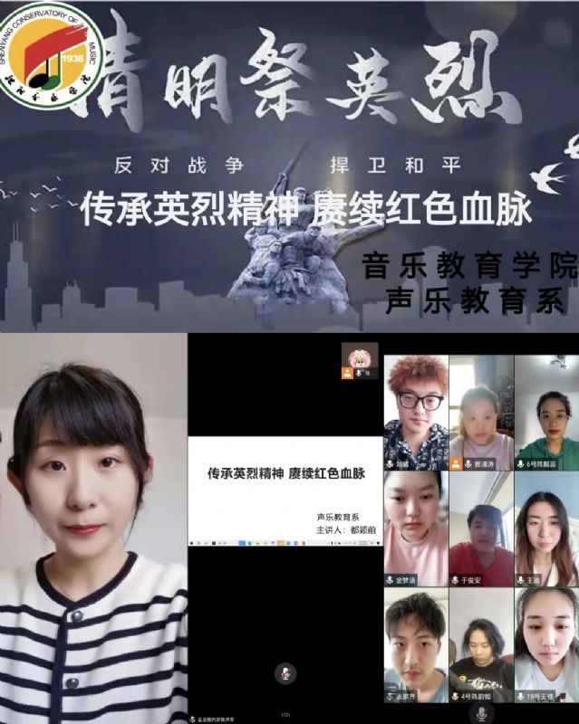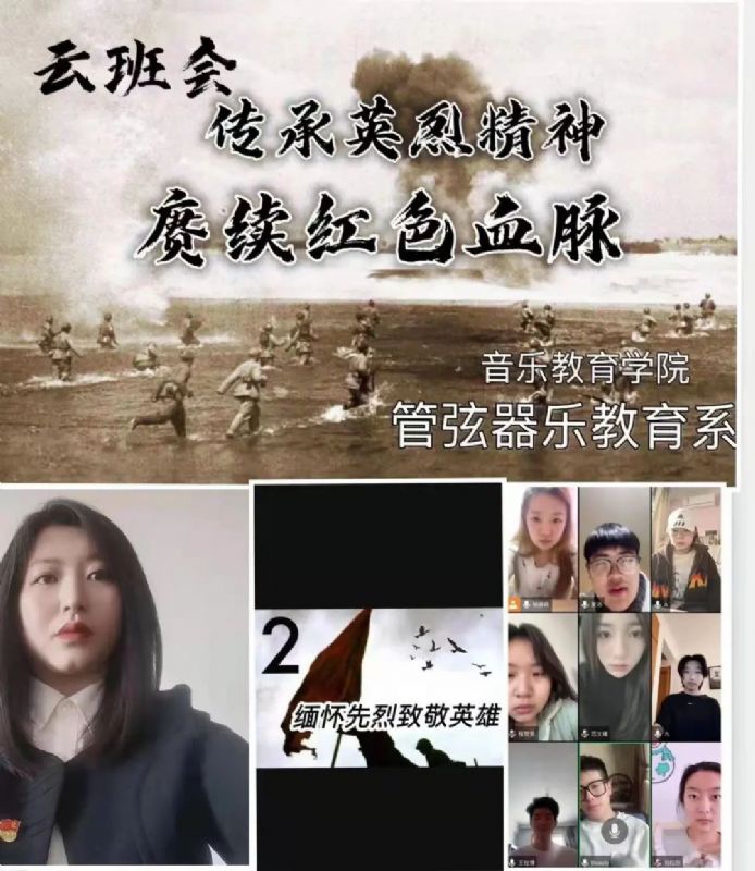 梨花风起,幽思渺渺,年年清明今又是。为引导广大师生传承弘扬革命先烈的优秀品质和精神,树立高尚的爱国主义思想,缅怀先烈光辉革命历史。音乐教育学院根据目前疫情防控形势,通过网络平台,于4月2日—6日开展了以“传承英烈精神 赓续红色血脉”为主题的“云端祭英烈”系列活动,以此缅怀先烈,致敬英雄。