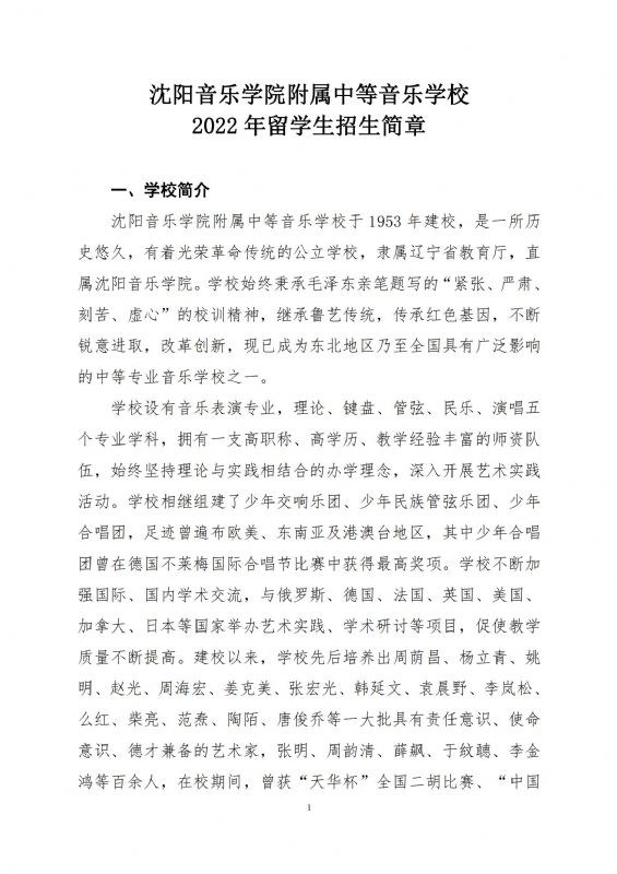 沈阳音乐学院附属中等音乐学校 2022 年留学生招生简章.pdf