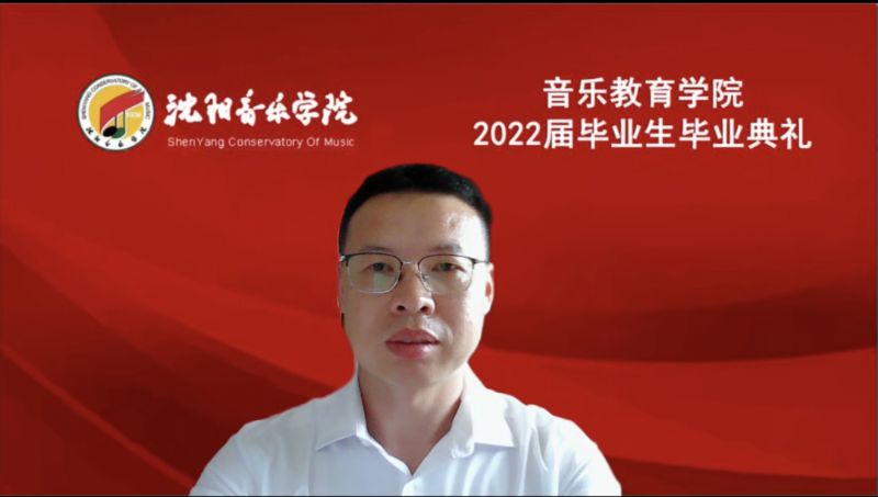 典礼上,严万山讲话。他代表音乐教育学院全体师生向顺利完成学业的2022届本科生毕业生、研究生毕业生表示热烈的祝贺!向全体教职员工和毕业生家长们表示诚挚的感谢和崇高的敬意!回顾了入学以来,同学们和母校一起与时代同行,见证党和国家一个个历史性的重要时刻;赞誉了师生们同袍同泽、并肩携手,共同走过抗击疫情这段特殊的征途。对即将踏上奋斗新征程的学子们,送上三点嘱托: