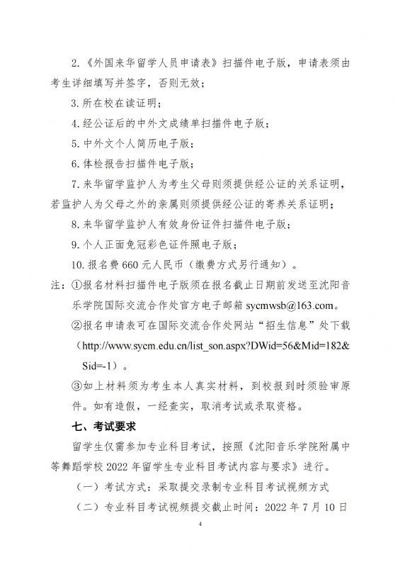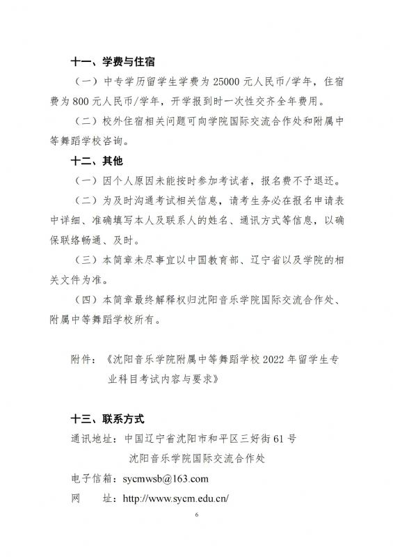 沈阳音乐学院附属中等舞蹈学校2022年留学生专业科目考试内容与要求.pdf