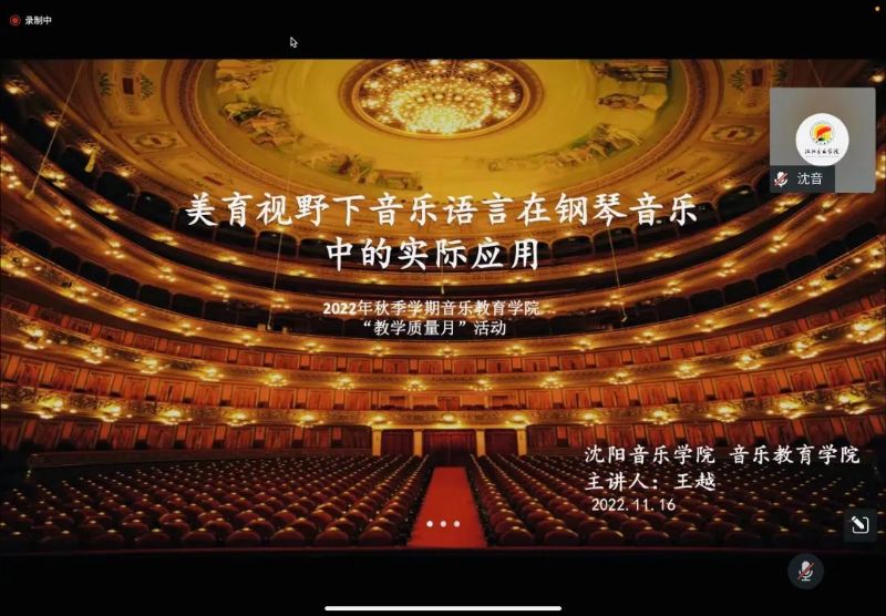 为切实保障疫情期间线上教学质量,增强学生们的学习热情,2022年11月16日13时,音乐教育学院专业基础课教研室王越老师,以线上形式开展了题为《美育视野下音乐语言在钢琴音乐中的实际应用》公开课。