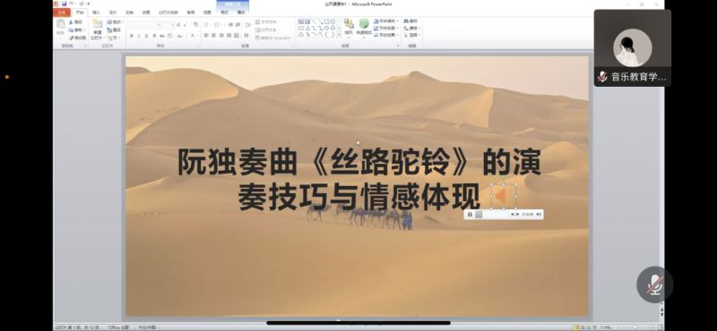 11月4日14:00音乐教育学院民族器乐教育系以线上形式开展了教学质量月系列活动——《阮独奏曲<丝路驼铃>的演奏技巧和情感体现》,主讲人为王茵老师。