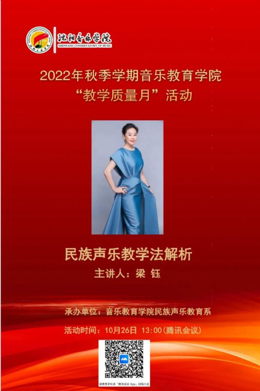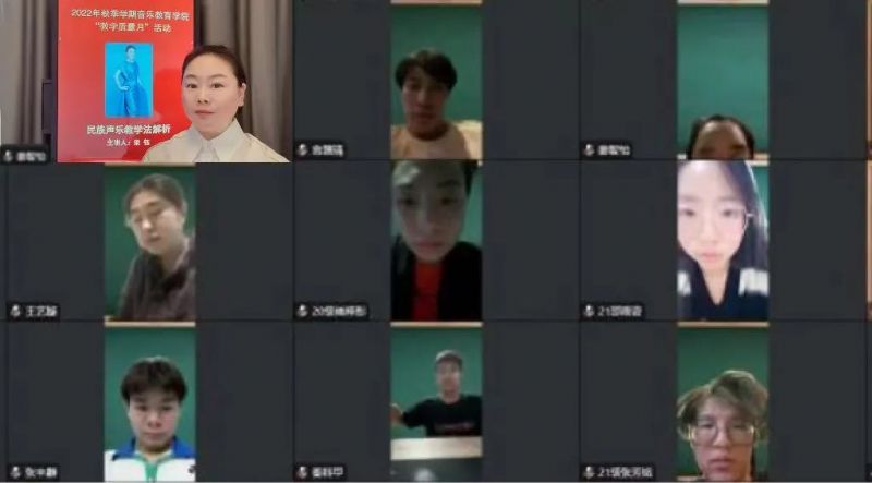 2022年10月26日13时,2022年秋季学期音乐教育学院“教学质量月”活动拉开序幕,第一讲由民族声乐教育系副教授梁钰老师为大家讲授《民族声乐教学法解析》公开课。民族声乐教育系师生以腾讯会议的方式线上进行聆听、学习。