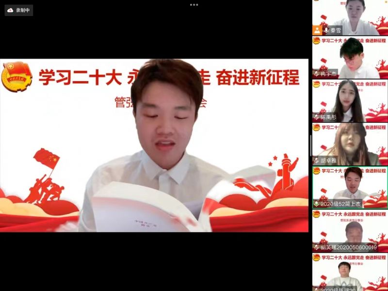 通过开展线上集体学习、线下以寝室为单位小组学习、读书分享、绘制学习手账等不同形式,多角度、宽领域深入学习党的二十大报告以及相关理论文章,加深对党的二十大精神的全面系统学习。