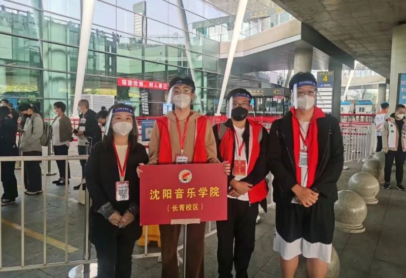 在机场、沈阳站、沈阳北站、沈阳南站等站点翘首以盼萌新的辅导员老师和志愿者们是萌新们最可靠的引路人,醒目的红马甲和标志牌,他们像夜航中的灯塔,用汗水和行动诠释担当,用爱传递温暖和关怀。