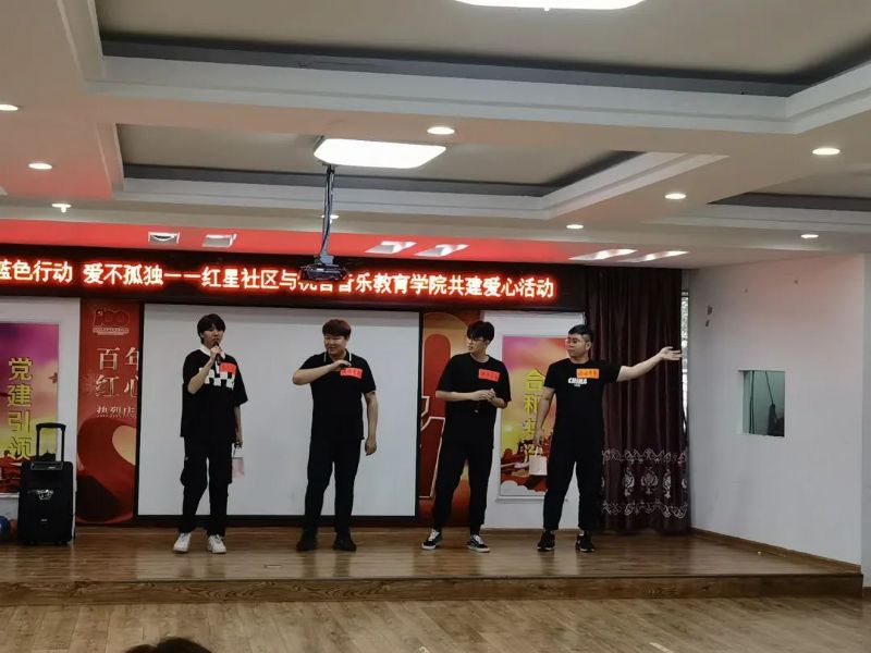 为深入学习贯彻习近平总书记在庆祝中国共产主义青年团成立100周年大会上的重要讲话精神,引导我院学子扎根辽沈大地,在社会课堂中“受教育、长才干、作贡献”,积极发扬沈阳青年在志愿服务中的宝贵经验,为社会做出贡献。2022年7月15日,音乐教育学院分团委“守护星”志愿者团队到沈阳市和平区新华街道红星社区开展了“蓝色行动 爱不孤独——蓝色生日会”关爱孤独症儿童爱心活动。新华街道红星社区书记,沈阳康纳洲孤独症家庭服务中心创始人、理事,音乐教育学院党总支副书记,学生管理办公室主任,院办、教管、学管联合党支部书记,分团委书记,星宝及其监护人,全体志愿者共50余人参加了活动。
