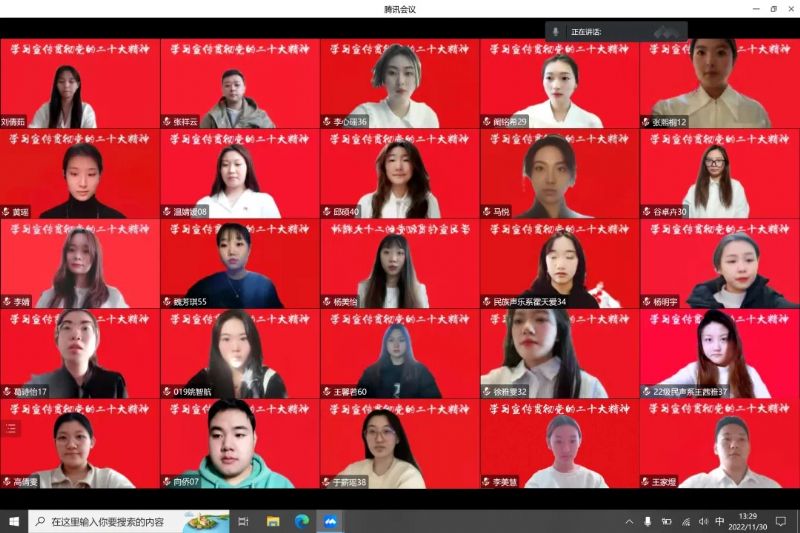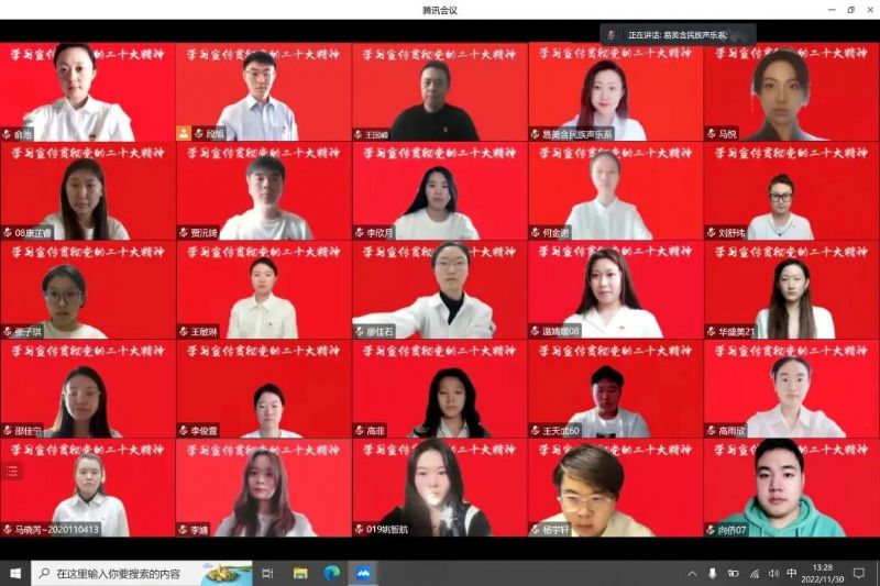 为深入学习宣传贯彻党的二十大精神,把全系师生的思想统一到党的二十大精神上来,用好用活红色资源、深化党史学习教育,坚持为党育人、为国育才,持续构建“大思政”育人格局,弘扬雷锋精神、为新时代明德育人,11月30日,民族声乐系邀请抚顺雷锋学院教务部主任尹娇副教授作“学习党的二十大精神 引领党员奋进新征程——故事党课 共产党员的样子”专题讲座。民族声乐系全体师生参加线上讲座,讲座由民族声乐系党总支教师、党支部书记徐威主持。