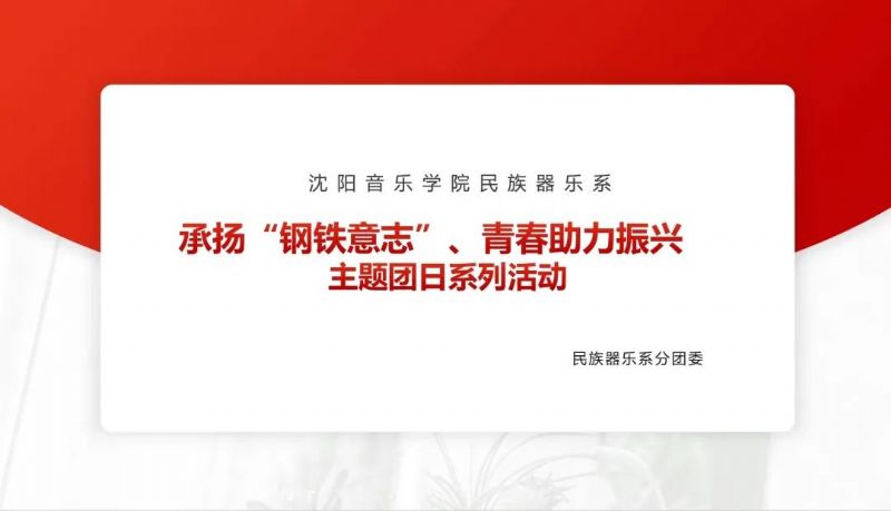 按照辽宁团省委下发的《开展“承扬‘钢铁意志’、青春助力振兴”主题团日活动的通知》文件要求,为进一步引导青年团员在推动辽宁全面振兴、全方位振兴中吃苦耐劳、甘于奉献、开拓创新、勇于争先的时代精神,民族器乐系分团委于10月26日至11月2日开展“承扬‘钢铁意志’、青春助力振兴”主题团日系列活动。
