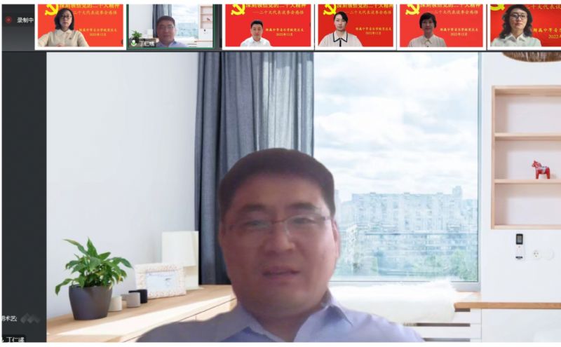 丁仁彧教授的报告分为四个部分。第一部分介绍了会前准备、参会过程、听取报告、学习研讨等情况以及与会时激动的心情;第二部分传达了会议期间国家、省领导在辽宁代表团讲话内容及对二十大报告的详细解读;第三部分详细阐述了学习党的二十大精神,要立足读原文、学原著,要与深刻领悟习近平新时代中国特色社会主义思想的核心要义相结合,着重在“十个明确”“十四个坚持”“十三个方面成就”上下功夫、见实效;第四方面结合二十大报告,围绕高校全面贯彻党的教育方针,落实立德树人根本任务依次阐述。最后他讲到,沈阳音乐学院作为第一所由中国共产党创办的高等艺术院校,一直秉承繁荣民族文化、服务人民为己任,在不同历史阶段均做出了突出贡献。在新时代新征程上,附中更要以党的二十大精神为指引,紧跟时代步伐,继承鲁艺传统,发扬斗争精神,突出专业优势,形成自身特色,为党和国家培育更多品学兼优的艺术人才,努力把附中建设成为国内一流音乐人才储备基地。