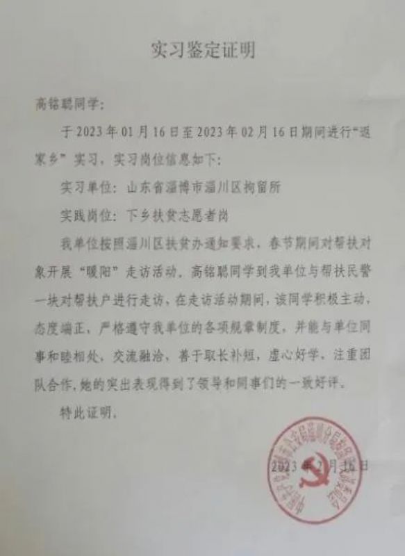 实践岗位:下乡扶贫志愿者服务岗 实践经历:参加 “暖阳”活动,与帮扶民警一起到淄川区寨里镇北佛村多户帮扶户家中走访,了解脱贫情况并做好记录;对脱贫群众健康情况开展全面摸排,积极向帮扶群众宣传防疫知识,送去党和政府的温暖与关怀。