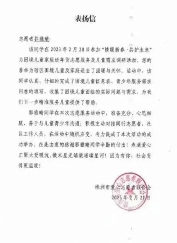 实践经历:参加“情暖新春﹒共护未来”为困境儿童家庭送年货志愿服务及儿童需求调研活动,负责完成困境儿童信息表、青少年服务需求问卷填写,收集困境儿童面临的实际问题与需求。
