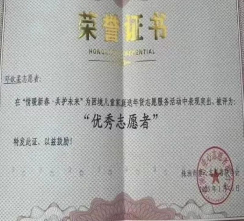 实践经历:参加“情暖新春﹒共护未来”为困境儿童家庭送年货志愿服务活动。