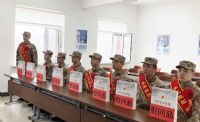 会上,与会领导为入伍新兵佩戴绶带和大红花,并发放了慰问品。