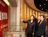 在辽沈战役纪念馆序厅,首先由音乐教育学院党总支书记陈可可领誓,集体重温入党誓词。随后大家跟随讲解员重走了习近平总书记在辽沈战役纪念馆内参观的路线,依次参观了序厅、战史馆、支前馆、英烈馆、全景画馆,通过馆内陈列的照片、物品、影像、文字等珍贵资料,共同回顾东北解放战争历史和辽沈战役胜利进程,追忆广大人民群众支援前线的感人事迹和革命先烈不畏牺牲的英雄事迹,真实而震撼地再现了那段弥漫硝烟的岁月。大家被革命先辈的战斗经历和英勇事迹深深感染,感受到幸福生活的来之不易,更能理解习近平总书记的嘱托:要讲好党的故事、革命的故事、英雄的故事,把红色基因传承下去,确保红色江山后继有人、代代相传。