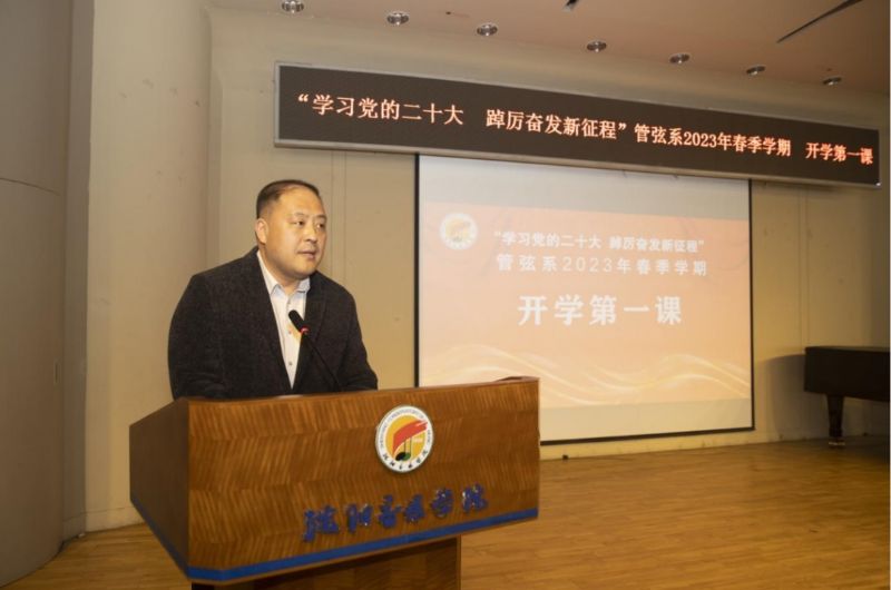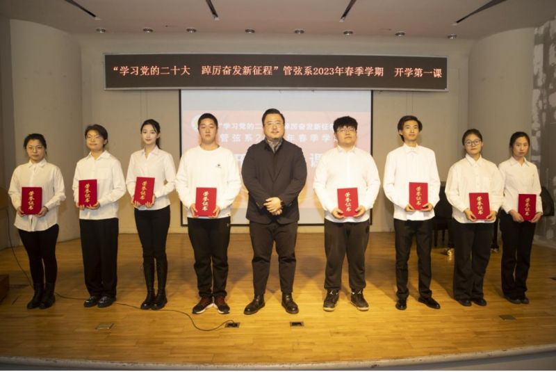 律回春晖渐,万象始更新。为学习宣传贯彻党的二十大精神和习近平总书记关于教育工作的重要论述,切实增强管弦系师生的责任感和使命感,激励我系师生振奋精神、接续奋斗、锐意进取、再创佳绩,3月22日下午,管弦系在第二教学楼424多功能厅组织开展了“学习党的二十大 踔厉奋发新征程 ”开学第一课主题活动。管弦系全体师生参加了本次活动。