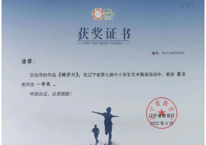 此次中小学生艺术展演活动是辽宁省深入学习贯彻全国教育大会精神,全面落实《中共中央办公厅 国务院办公厅关于全面加强和改进新时代学校美育工作的意见》,依据《学校艺术教育工作规程》《教育部关于举办全国第七届中小学生艺术展演活动的通知》(教体艺函[2021]1号)要求而举办的一项常规展演活动。活动每三年举办一次,强调围绕“阳光下成长”主题,通过“校校办展演,人人都参与”的活动过程,全面展现新时代青少年学生热爱中国共产党、热爱祖国、热爱人民,树立远大志向、培育美好心灵,勤学上进、志存高远、奋发成长的昂扬风采。展演活动由辽宁省教育厅主办,全省中小学共同参加,经过校级,县级,市级,省级展演四轮后评比产生奖项。以上老师所指导的作品,在本次比赛中脱颖而出,获得佳绩,为学校争得了荣誉,特此祝贺!