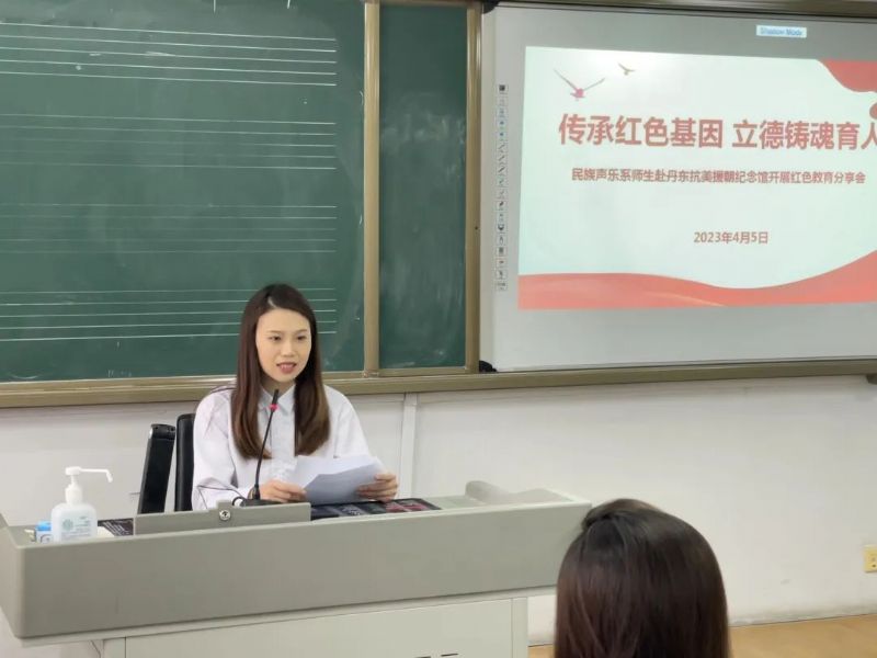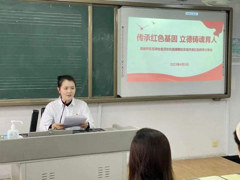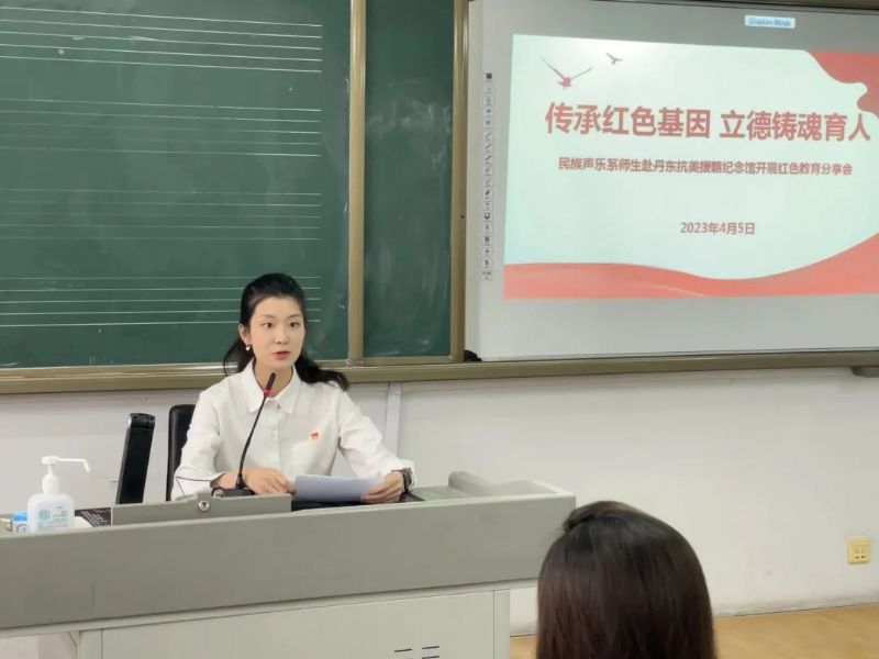在“传承红色基因 立德铸魂育人”红色教育分享会上,民族声乐系文艺轻骑兵小分队的5名学生党员分别为与会师生们分享了赴丹东抗美援朝纪念馆参观学习的心得与感悟,字字真切、声声动人,带领同学们追寻埋骨他乡的英烈忠魂中热烈燃烧着的民族精神,共同回望73年前那段气壮山河、英勇无私的峥嵘岁月。抗美援朝伟大的英雄壮举与斗争精神令大家无比动容,天地英雄气、千秋尚凛然,满腔爱国志、一生来作答。