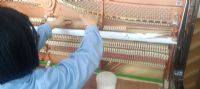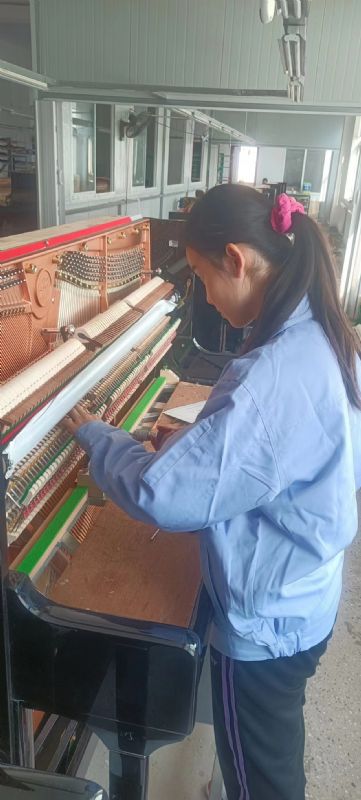 二翻是通过拧卡钉调整开门距离,调整钢琴键盘,包括键深、键高、键间距,对头番的工作进行精细调整。