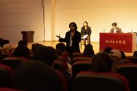 交流会安排了现场提问环节,各年级学生们就音乐剧《阿波罗尼亚》的排演、以及如何促进专业水平提升等方面与两位毕业生进行了交流。陈凯和李政绪把自己在演出过程中难忘的经历,和在自身的成长经验向同学们进行了分享,并对同学们在专业学习上遇到的问题逐一给出了建议。