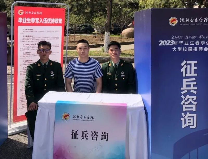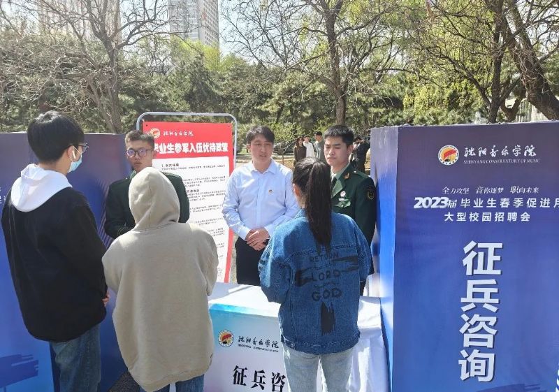 活动现场设置征兵咨询服务区,搭建“沈阳音乐学院毕业生参军入伍优待政策”展架,邀请声乐歌剧系戚鹏飞、音乐教育学院孙泽平、戏剧影视学院孟令旭三位退役大学生士兵现场分享他们军旅生涯中的体会,吸引大批应届毕业生咨询相关政策。学院党委武装部征兵办赵晓晨对有参军意向的毕业生进行现场政策讲解及报名指导。