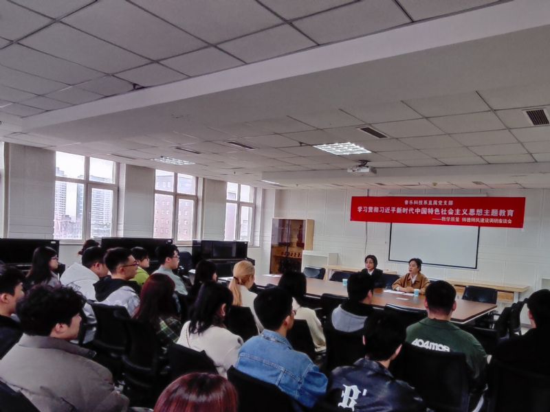 4月25日,在长青校区第二教学楼1204,音乐科技系直属党支部开展了学习贯彻习近平新时代中国特色社会主义思想主题教育调研座谈会。系主任邵申弘、直属党支部副书记郎彩飞,以及2020级、2021级学生干部、入党积极分子、团员代表28人参加了调研座谈。