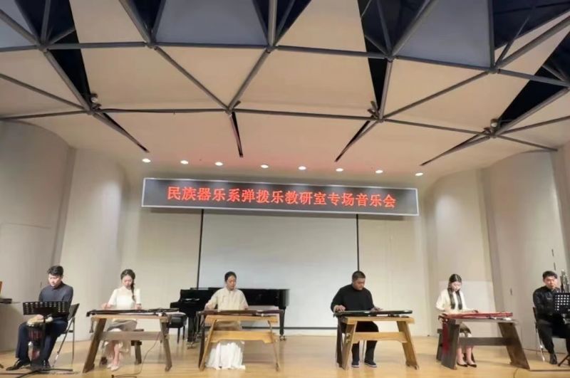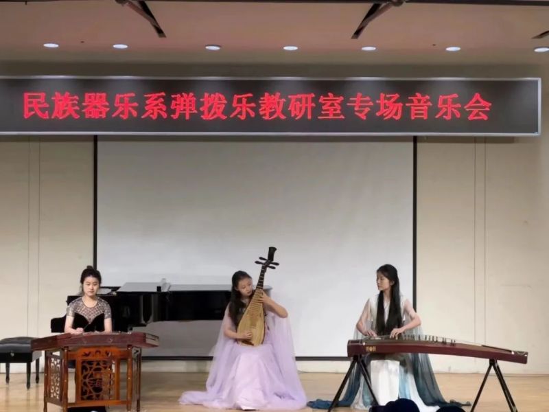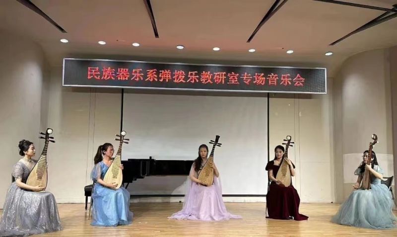 为开展好学习贯彻习近平新时代中国特色社会主义思想主题教育,推动学习指导实践,培养全面发展的优秀人才。4月28日,民族器乐系弹拨教研室在第二教学楼多功能厅举办了“民族器乐系弹拨乐教研室专场音乐会”。本场音乐会共11首作品,由各年级不同专业的学生参与演出。整场音乐会包含独奏,协奏,重奏等多种演奏形式,更有弹拨乐器与管乐、打击乐器的合作。希望学生通过本次音乐会能够开拓视野,学习实践相结合,提升综合素质,为专业学习指引方向。