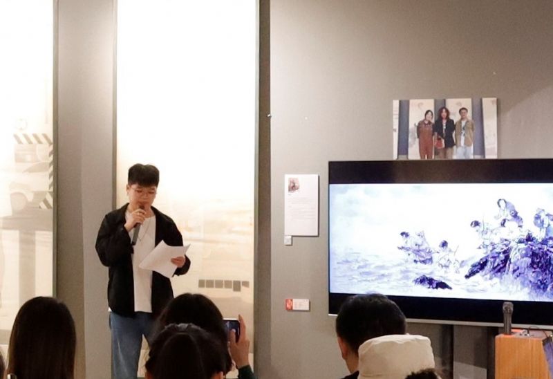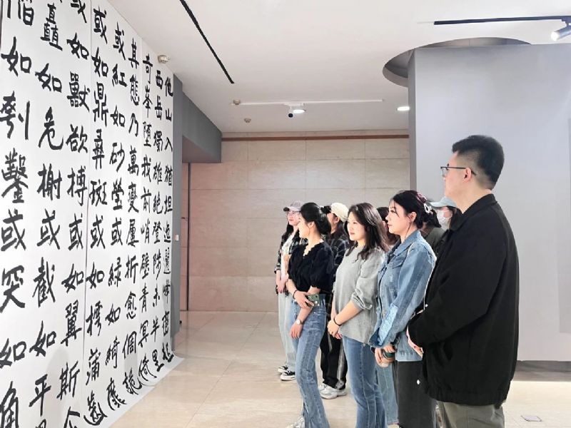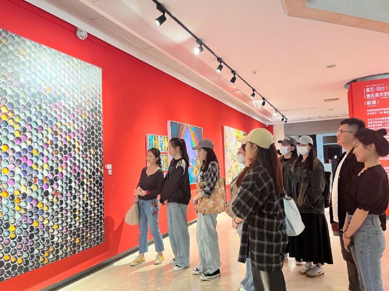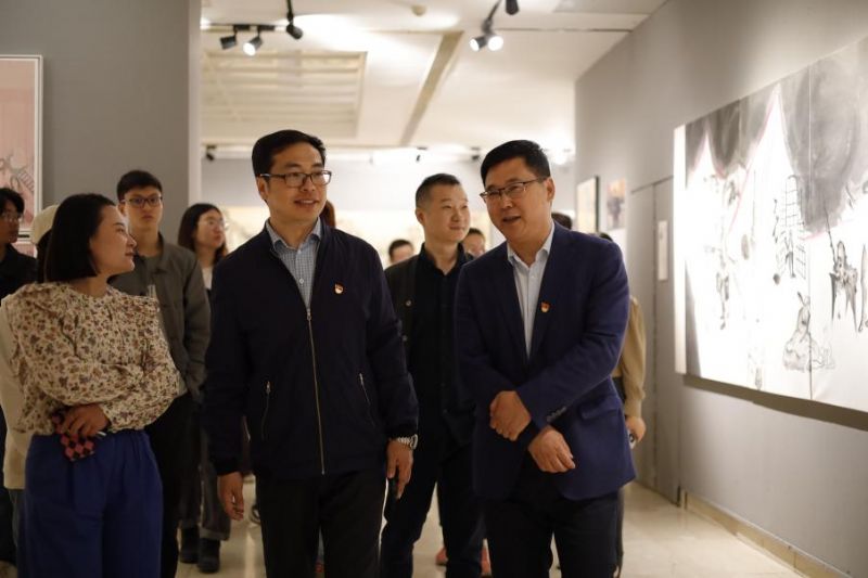 座谈会后,大家到鲁迅美术学院美术馆共同参观了“鲁艺·同行——鲁迅美术学院2023届研究生毕业作品展”,现场聆听了中国画学院副院长杨振凯讲解的中国画和书法毕业作品创作过程与实践感悟。