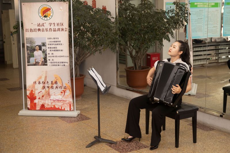 本期讲演会由钢琴系2020级手风琴演奏专业研究生张川玉讲解和演奏手风琴曲《我为祖国献石油》。歌曲《我为祖国献石油》是由老院长秦咏诚作曲、薛柱国作词、刘秉义原唱的经典音乐作品,曾入选中宣部“庆祝中华人民共和国成立70周年优秀歌曲100首”。